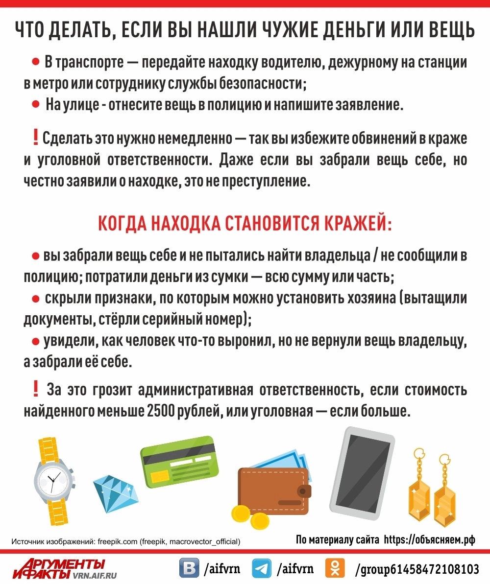 Что делать, если вы нашли чужие деньги или вещь? Инфографика