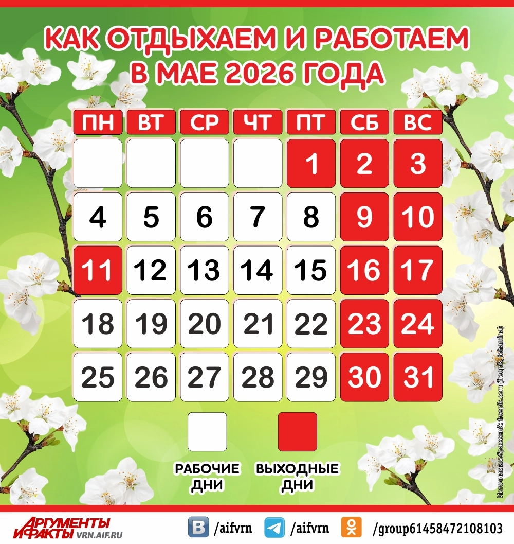Как отдыхаем и работаем в мае 2026 года? Инфографика