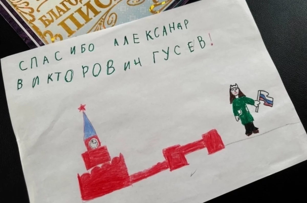 В знак благодарности она передала главе региона открытку и рисунок, на котором изобразила московский Кремль и девочку, держащую в руках флаг России. Подготовить этот подарок Эмилии помогла её мама.