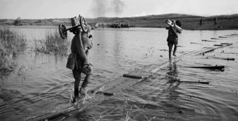 По этой переправе, покрытой полуметровым слоем воды, ночью на правый берег были переброшены танки, пушки, грузовики.