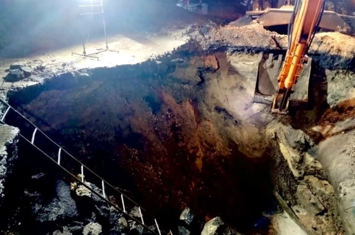 Аварийная бригада уже разработала котлован площадью 120 кв. м. и глубиной пять метров, а затем осушила его. После определения места и характера повреждения специалисты продолжили земельные работы. По их завершению они приступят к ремонту.