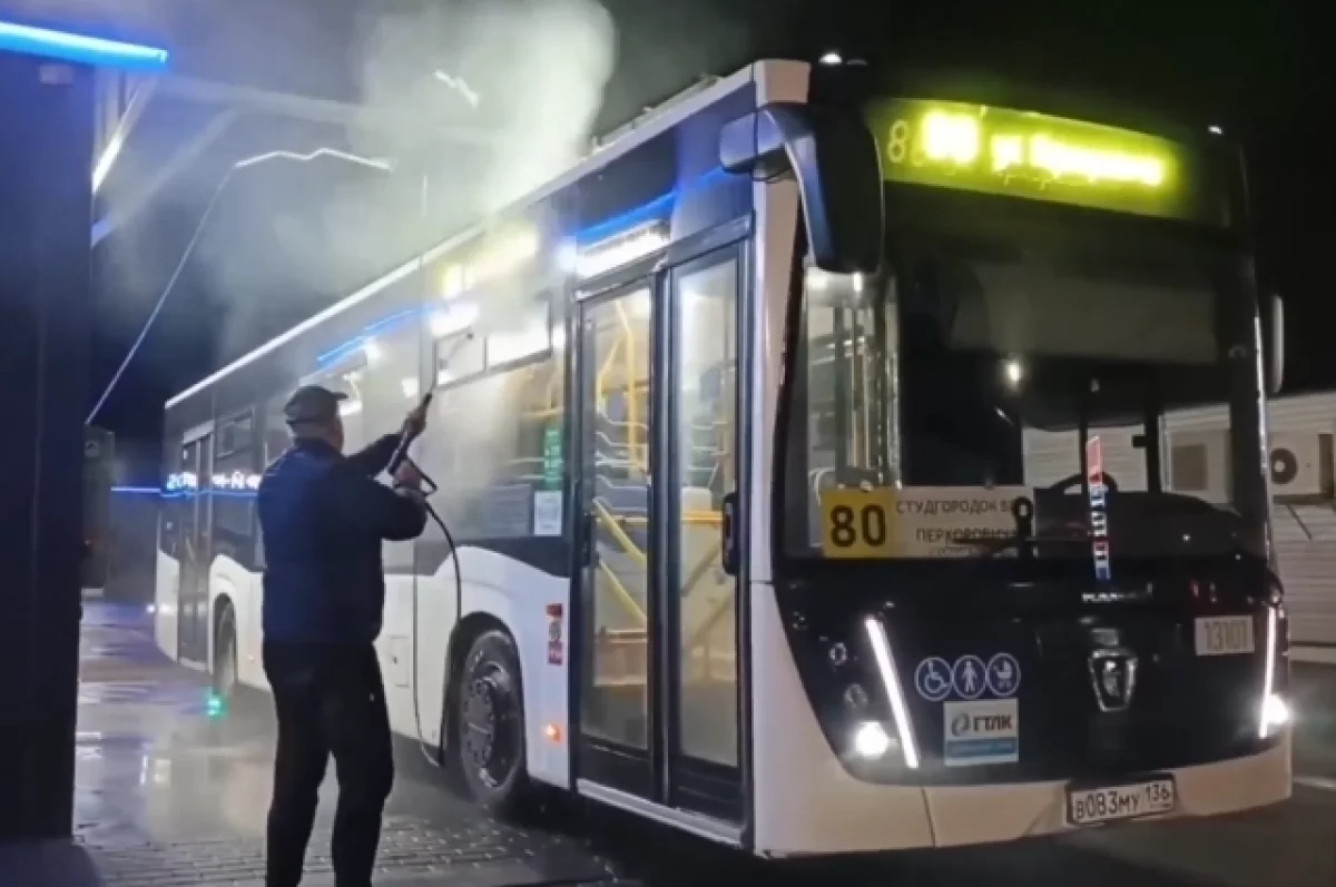 В мэрии рассказали, как моют автобусы в Воронеже. Технику приводят в порядок ежедневно.