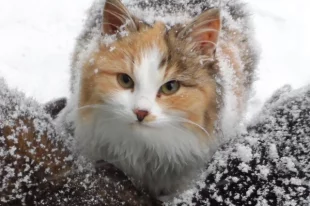 Животное оставили на улице в мороз.